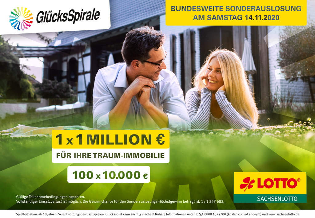Die Rentenlotterie GlücksSpirale bietet regelmäßig die Chance auf 10.000 Euro monatlich für 20 Jahre oder einen Sofortbetrag von 2,1 Millionen Euro (Chance 1 : 10 Millionen). Jetzt gibt es bei der bundesweiten Sonderauslosung die Chance auf weitere Gewinne – ohne Mehreinsatz.