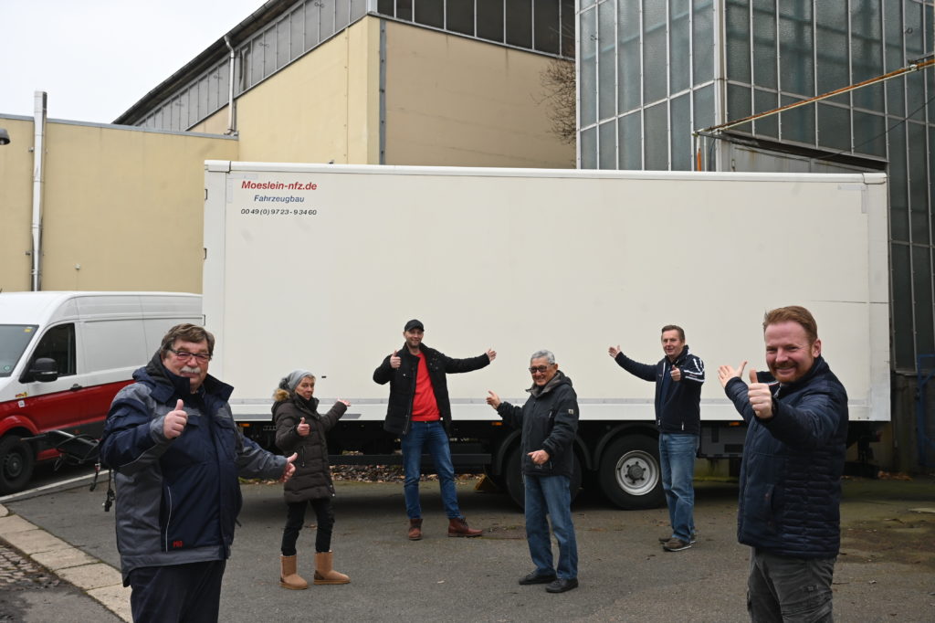 Chemnitz Schaustellerverband vor dem neuen Anhänger Foto: Andreas Seidel