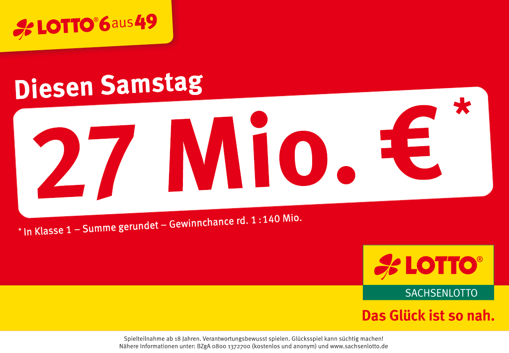 LOTTO-Jackpot wächst auf rd. 27 Millionen Euro