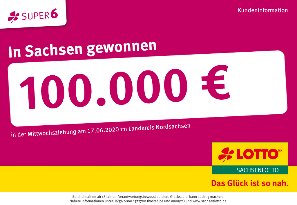 - Erneuter SUPER 6-Gewinn: 100.000 Euro fallen nach Nordsachsen