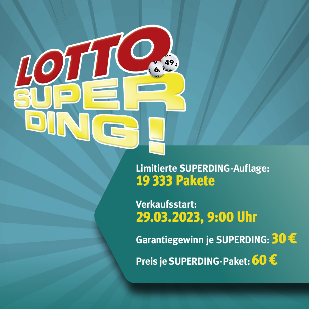 - Der Preis für ein Paket liegt bei 60 Euro und in jedem LOTTO SUPERDING steckt ein 30-Euro-Gewinn (Chance 1 : 1).
