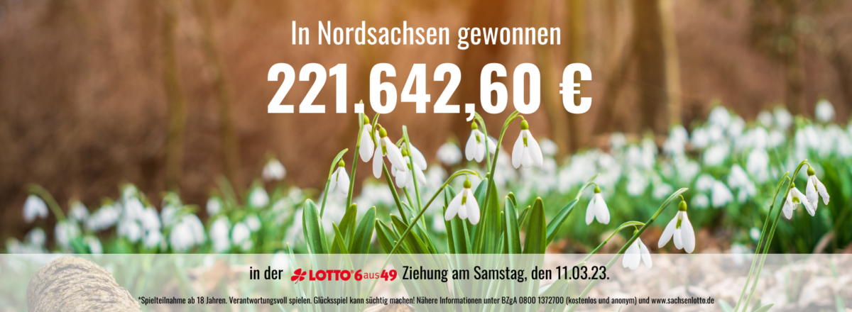 Jetzt gibt es einen weiteren Spitzengewinn im Landkreis Nordsachsen: Die Mittwochsziehung bei LOTTO 6aus49 am 15. März führte zu bundesweit sieben Gewinnen mit „6 Richtigen“ in der Gewinnklasse 2 und ließ den Jackpot in der ersten Gewinnklasse unberührt.