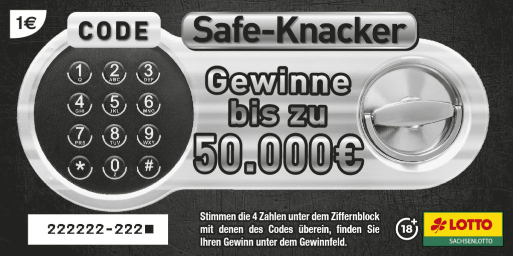 Mit einem Lospreis von nur 1 Euro und einem Höchstgewinn von 50.000 Euro (Chance 1 : 1 Mio.) ist der „Safe-Knacker“ einmalig. Kein anderes 1 Euro-Los bietet eine so hohe Gewinnchance. Gleichzeitig hält das Los eine spannende, mehrstufige Spielmechanik bereit: