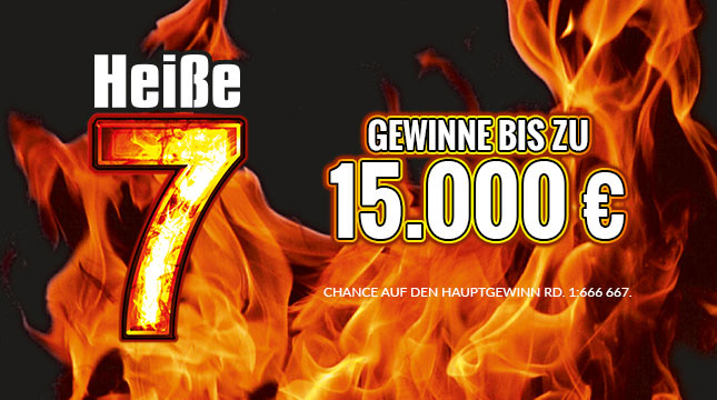 Die „Heiße 7“ etwa ist mit ihren sieben lodernden Flammen und sieben Eurozeichen genau das Richtige für kühle Tage. Dank mehrfacher Gewinnchancen gibt es mit dem beliebten Rubbellos bis zu 15.000 Euro zugewinnen. Die Gewinnwahrscheinlichkeit beim Rubbellos „Heiße 7“ in der höchsten Gewinnklasse beträgt rd. 1 : 666 667, ein Los kostet 2 Euro.