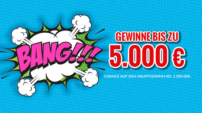 Ob nun Wham, Bang oder Wow – Mit etwas Glück hält unser Pop Art-Los Gewinne bis zu 5.000 Euro (Chance 1 : 500 000) bereit. Ein Los kostet 1 Euro.