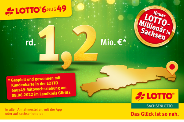 Wieder sächsischer Millionengewinn mit Lotto-Sechser: 5. Sachsenlotto-Millionär des Jahres kommt aus dem Landkreis Görlitz Was für ein Glück: Direkt hintereinander gibt es Millionengewinne mit „6 Richtigen“ in Sachsen. Nachdem in...