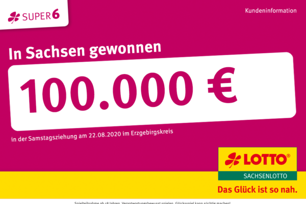 SACHSENLOTTO informiert: Wieder Glück im Erzgebirge: Mit 100.000 Euro den Höchstgewinn der Zusatzlotterie SUPER 6 gewonnen +++ Dresdener Gewinn von einer halben Million Euro noch nicht angemeldet
