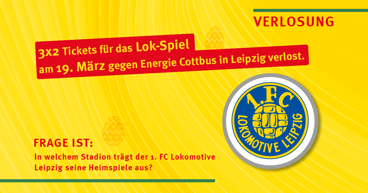 Es werden 3×2 Tickets für das Lok-Spiel am 19. März gegen Energie Cottbus in Leipzig verlost.