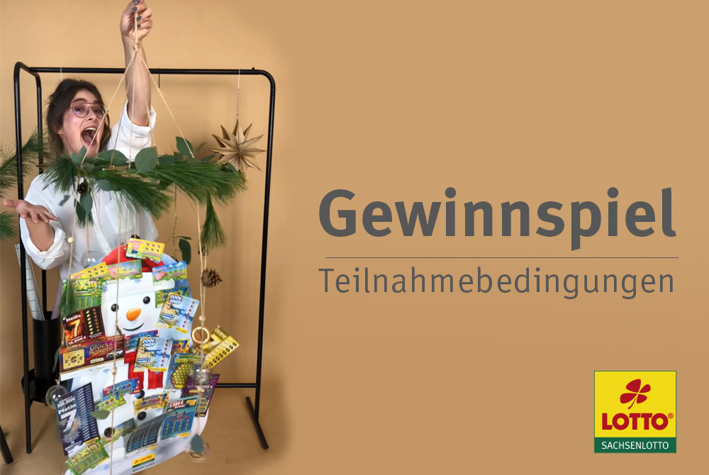 Die Teilnahme an dem Gewinnspiel ist unabhängig von der Teilnahme an den Lotterien und Wetten der Sächsischen Lotto-GmbH. Teilnahmeberechtigt sind nur Personen über 18 Jahre mit Wohnsitz in Sachsen. Ausgenommen von der Teilnahme sind Mitarbeiter der Sächsischen Lotto-GmbH und Mitarbeiter der Unternehmen, die an der Abwicklung des Gewinnspiels beteiligt sind.
