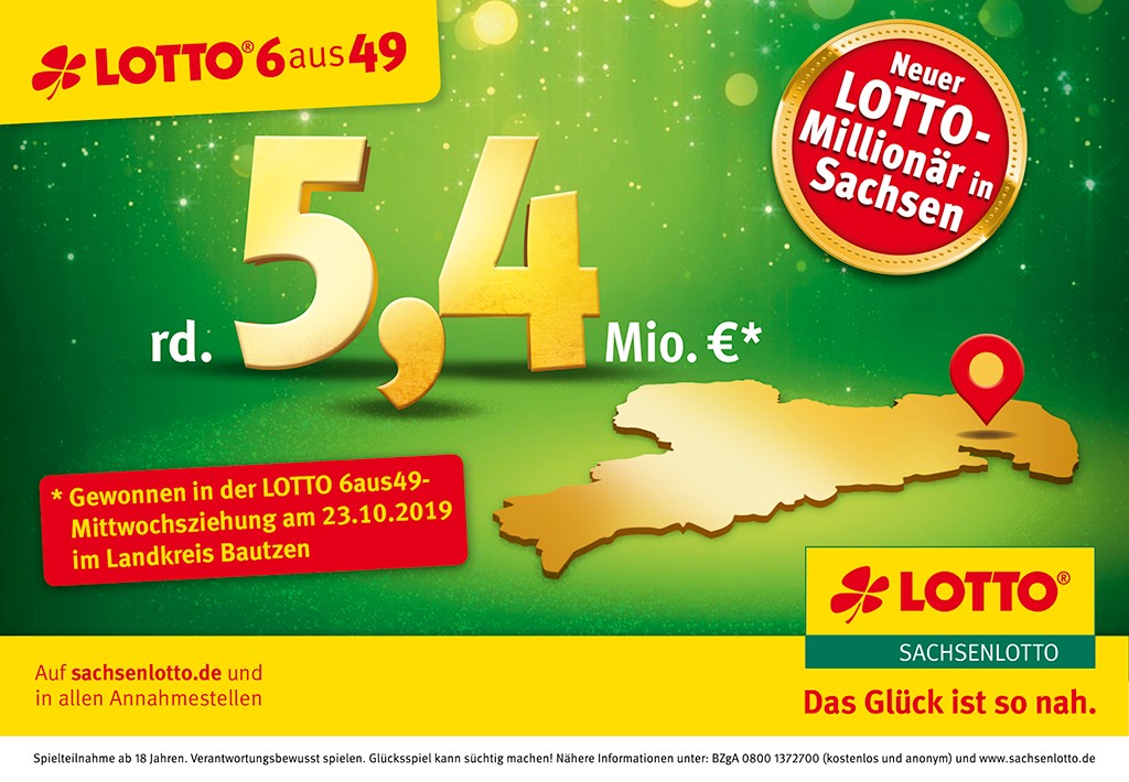 Weihnachten im Oktober: Kundenkartenspieler aus dem Landkreis Bautzen gewinnt 5,4 Millionen Euro mit LOTTO 6aus49