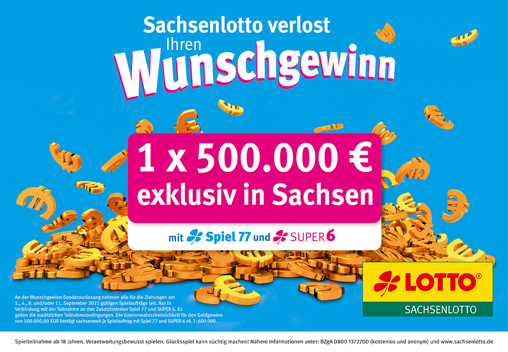 Bei der Wunschgewinn-Umfrage im Mai hatte Sachsen die Wahl und entschied sich unter drei Gewinnplänen für den einmaligen Höchstgewinn in Höhe von 500.000 Euro.